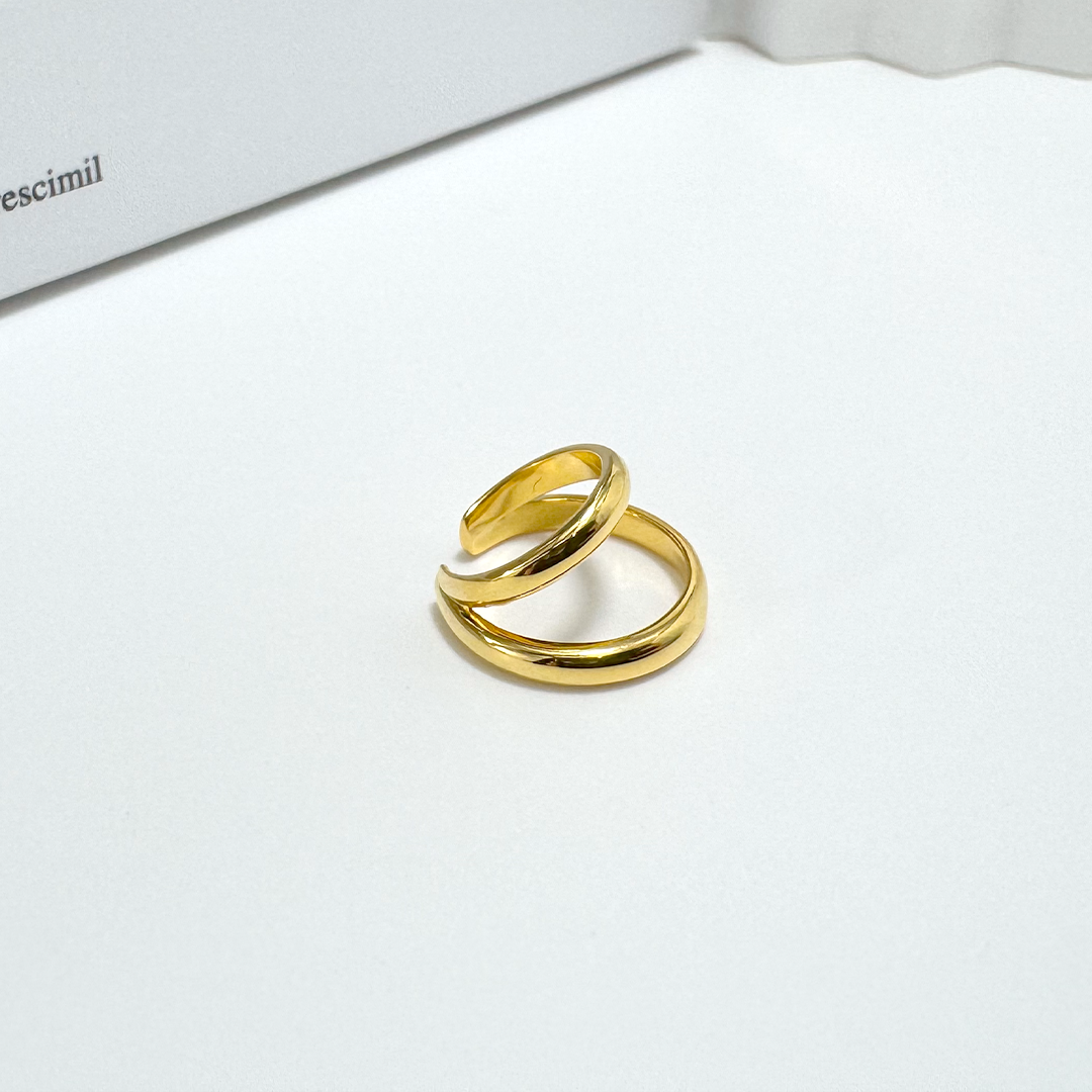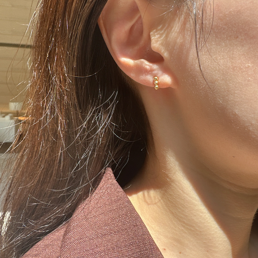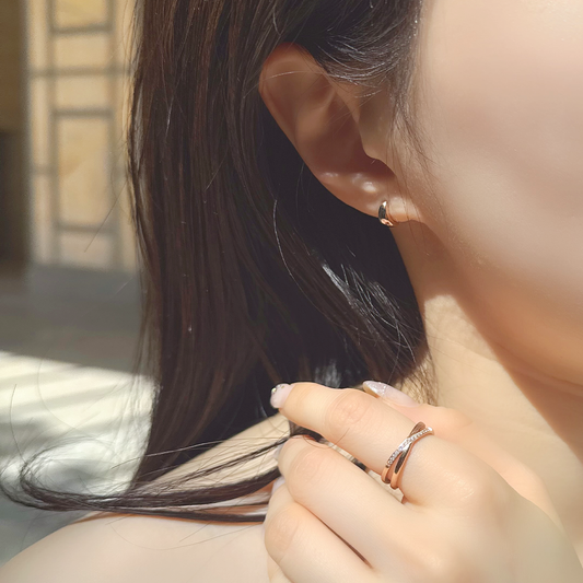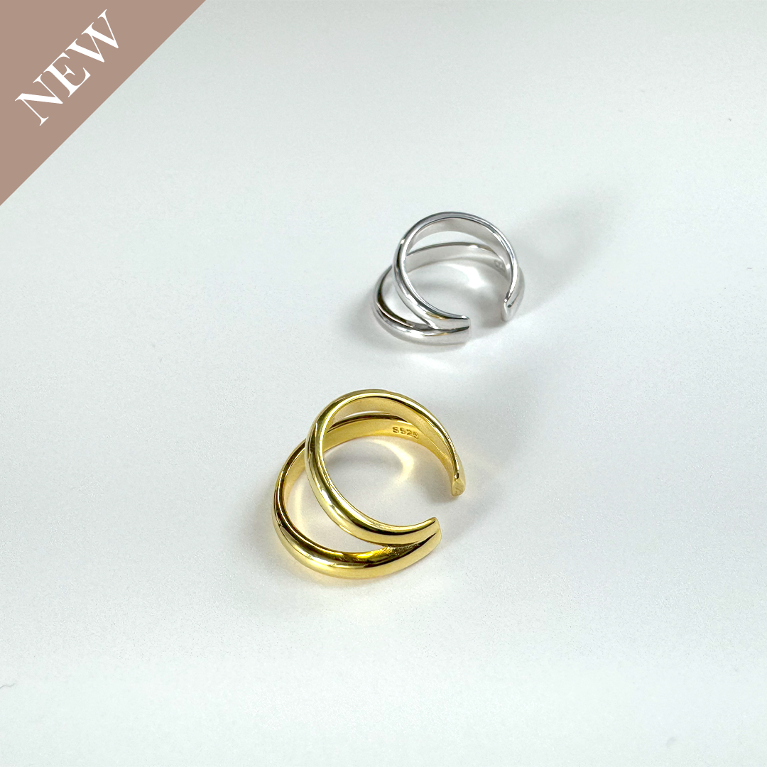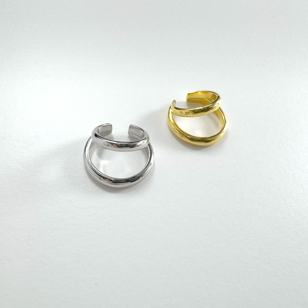 イヤーカフは耳の縁から差し込むだけの片耳スタイルで、重ね着けしたようなふたつの輪が華やかな表情を楽しめます。