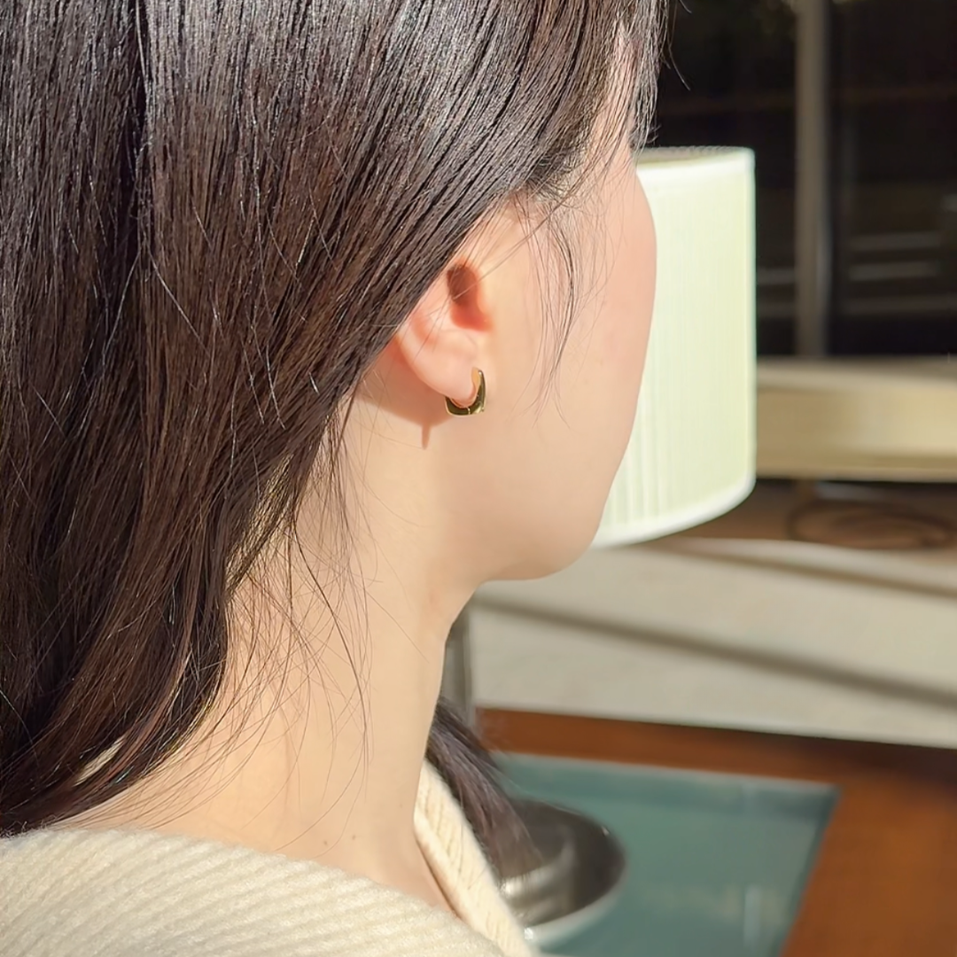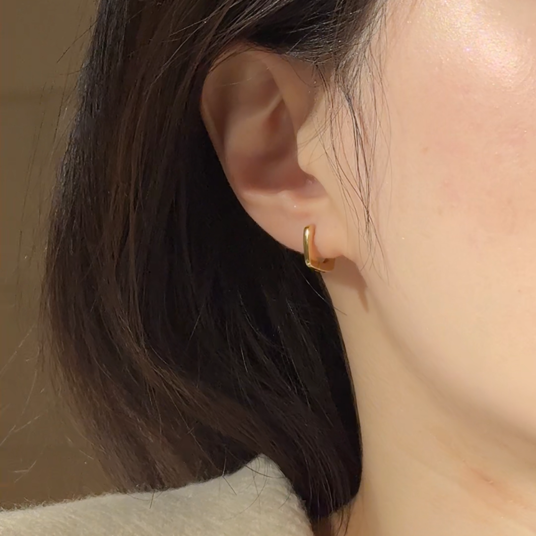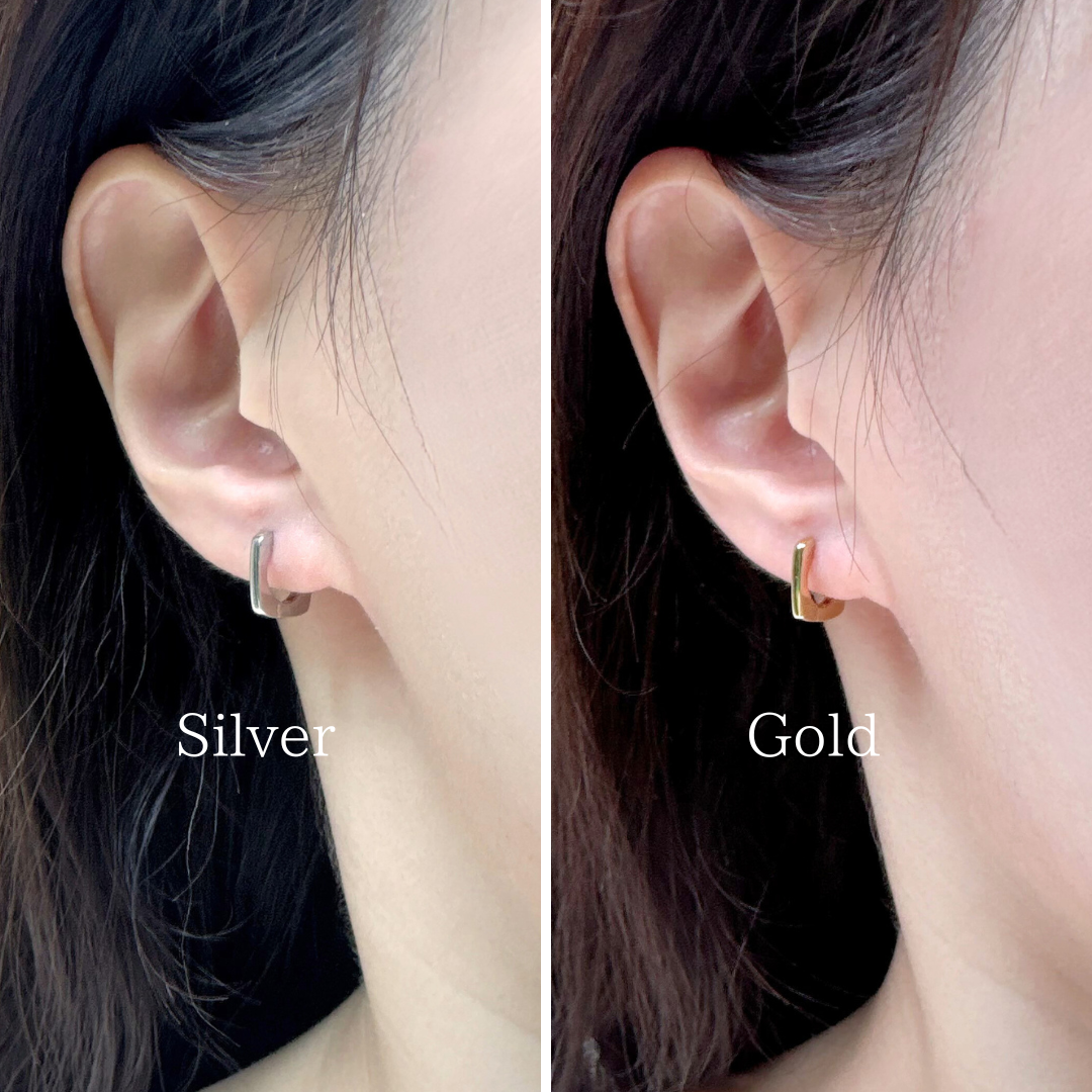 着けた時のバランスに最大限こだわった、シンプルで小ぶりなスクエアピアス。
