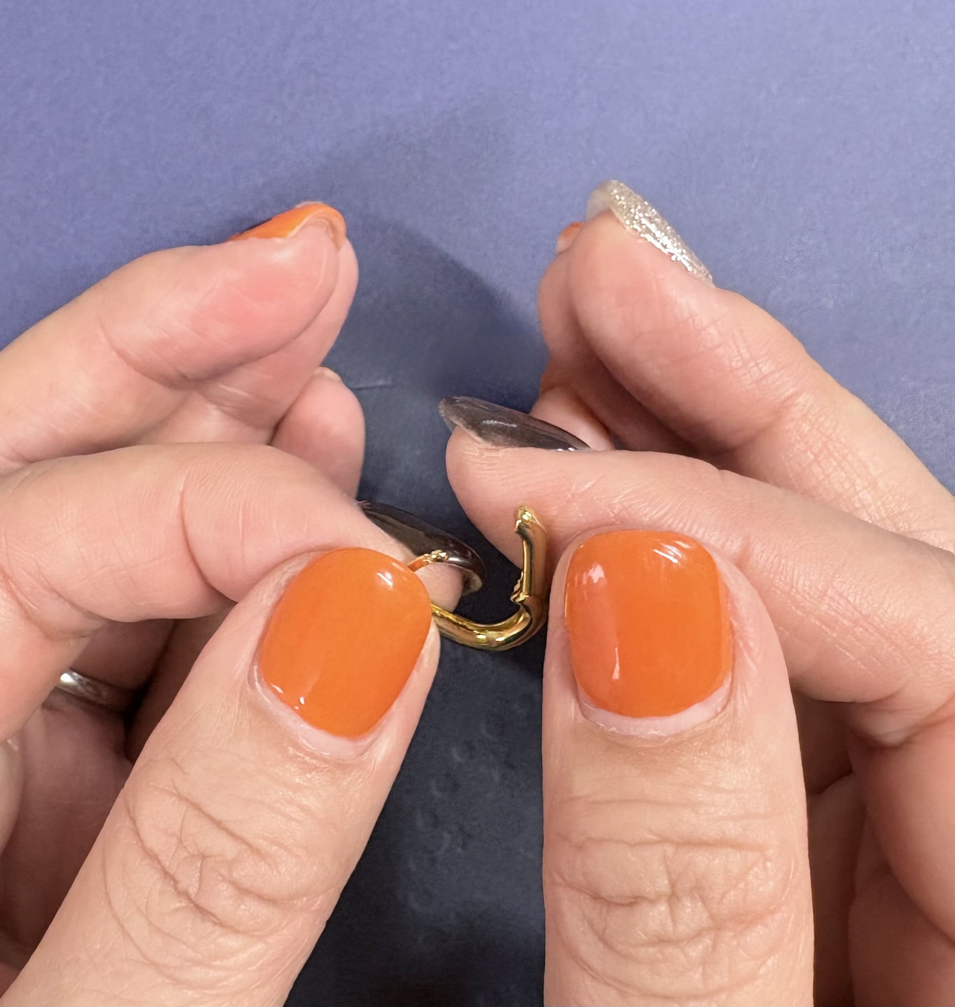 やわらかい丸みを帯びた長形のフープピアス。やわらかさを残しつつ、上品かつアンティークな雰囲気が残るアイテムです。
