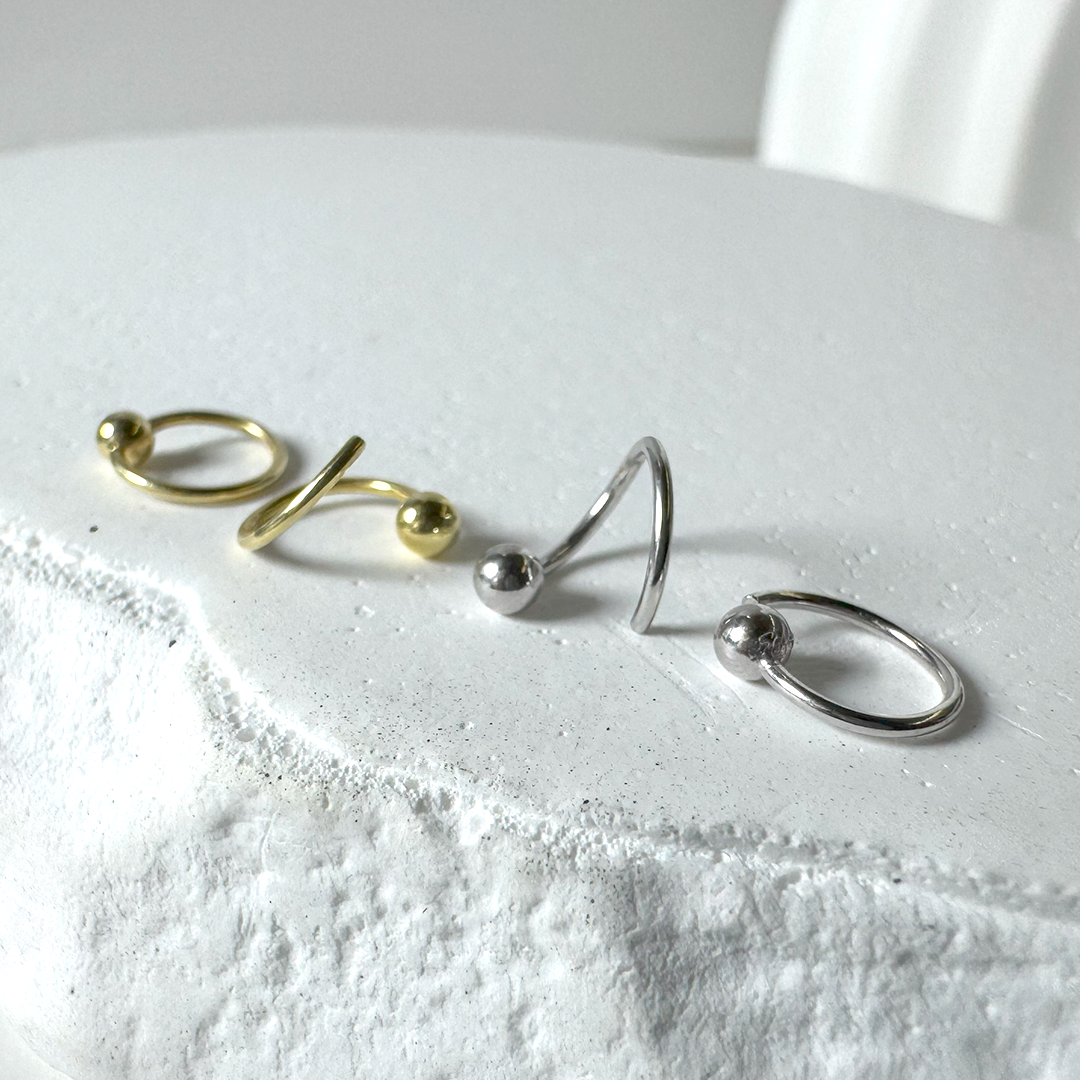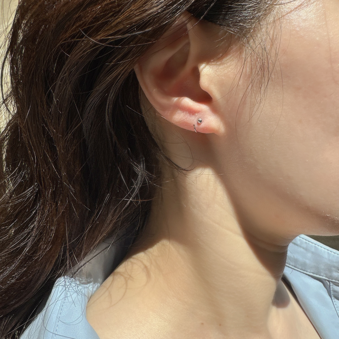 耳たぶにさりげなくフィット、どんなシーンにも映えるシンプルシルエットのミニフープピアス。